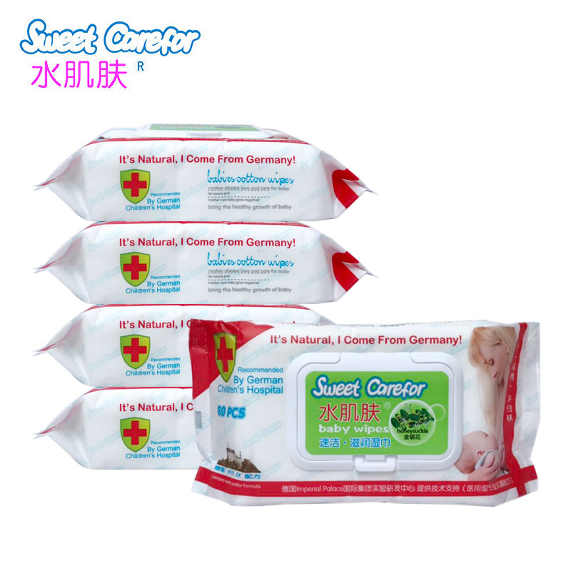 Water skin antibacterial moisturizing baby wipes 80 pumps * 5 packs with lids Baby butt special wet wipes