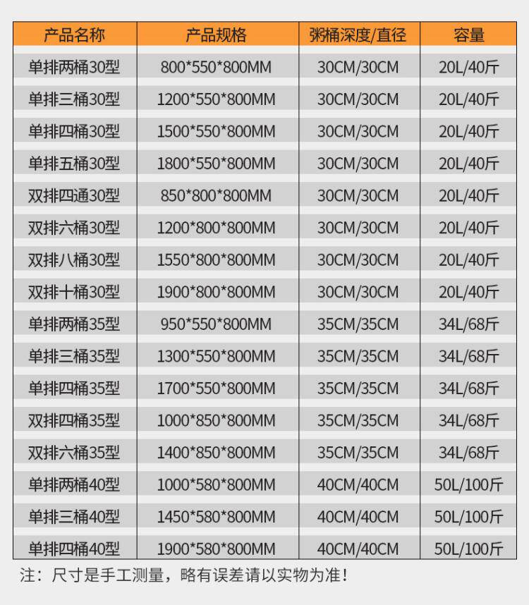 Single row of 2 barrels 30cm stainless steel barrel 20 litres Single row 3 barrels 30cm stainless steel barrel 20 litres Single row 4 drums 30cm stainless steel barrel 20 litres Single row 5 drums 30c