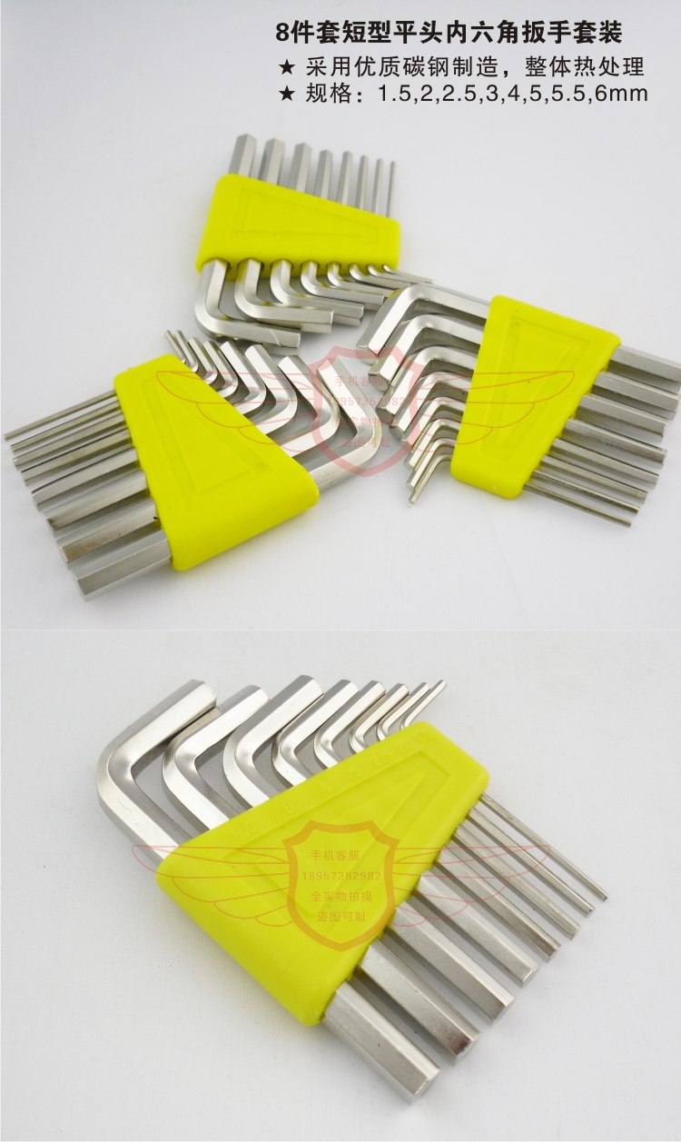 Short type flat head inner hexagonal suit machine for 8 pieces set small number of short inner 6 corner plate hand 6 corner key plate sub-tool set group