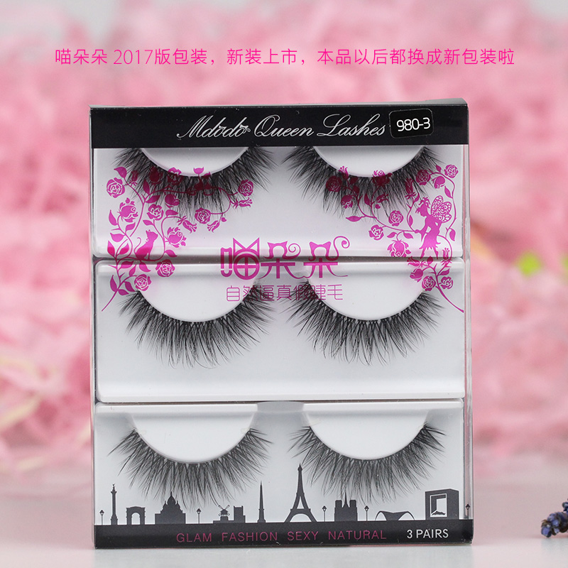 Simulation 3D stereo false eyelash 980 nature realistic and dense, thick and soft stalk T10 clean no glue three pairs of clothes