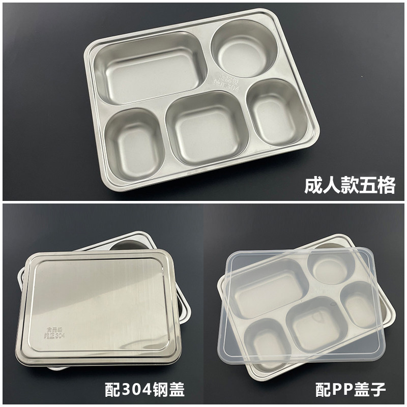 304 stainless steel plate Four-compartment five-compartment fast food plate Adult student custody canteen plate 4 5-compartment lunch box with lid