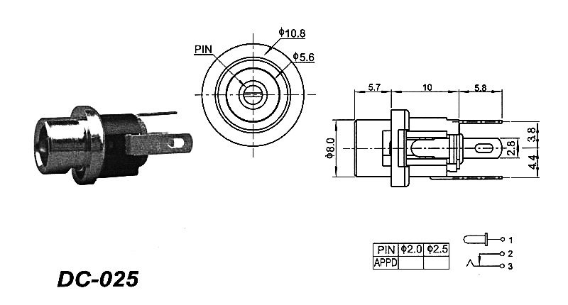 DC Power Socket DC-025 5 5*2 1mm 3 Feet Vertical Sluckhead Straight foot DC5521 Homeseat