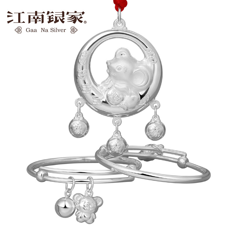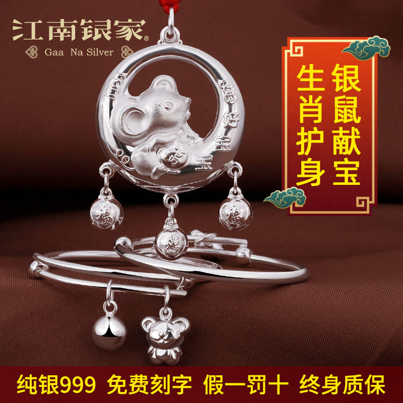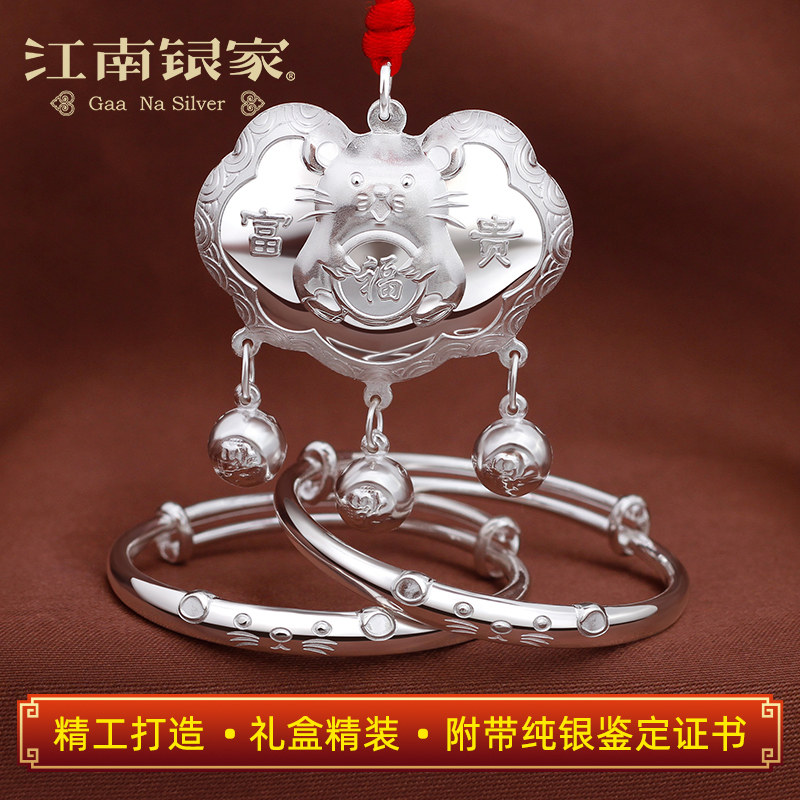 Rat baby silver bracelet baby longevity lock pig 999 sterling silver bracelet male and female silver lock child full moon silver jewelry