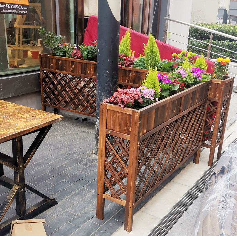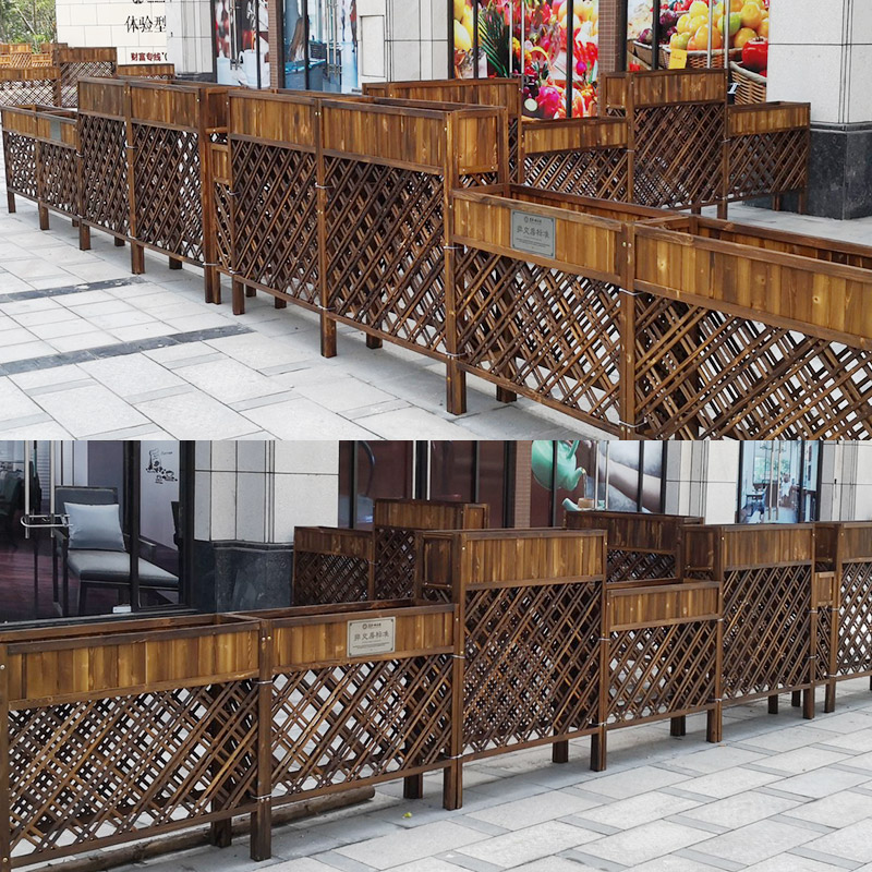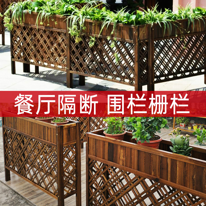 Dining room partition flower stand outdoor flower trough outdoor carbonized anticorrosive wood fence indoor balcony grid fence flower pot stand