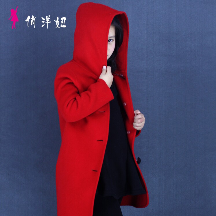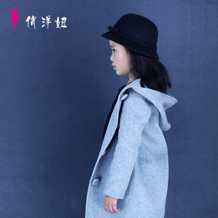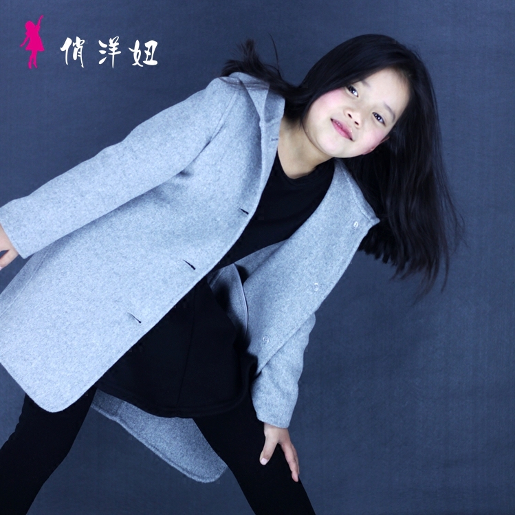 New Korean version of handmade double-sided cashmere wool hooded middle-aged children's clothing jacket small coat windbreaker