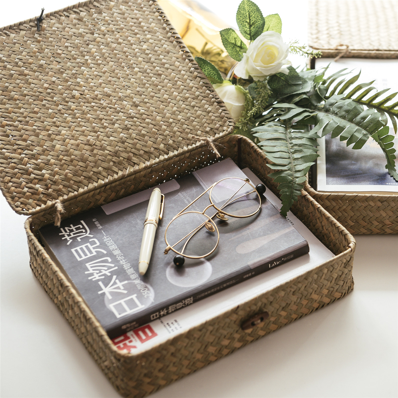 If Vegetarian Living Home Grass Knitted Jewelry Headphones Storage Box Office Snacks Toy Debris Finishing Containing Basket