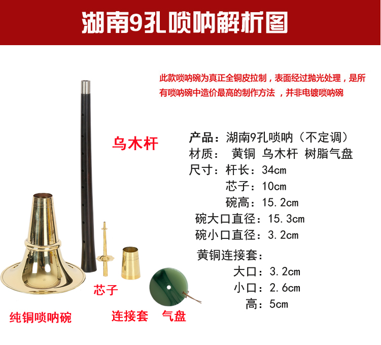 Hunan ebony suona nine-hole suona workmanship fine tone professional polishing factory direct sales send reeds