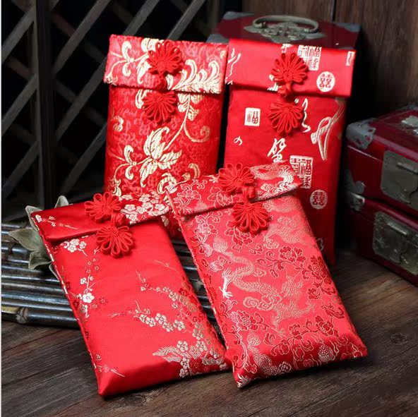 Wedding red envelopes High-grade brocade fabric retro plate buckle re-opening 10,000 yuan big red bag New Year and Spring Festival profit