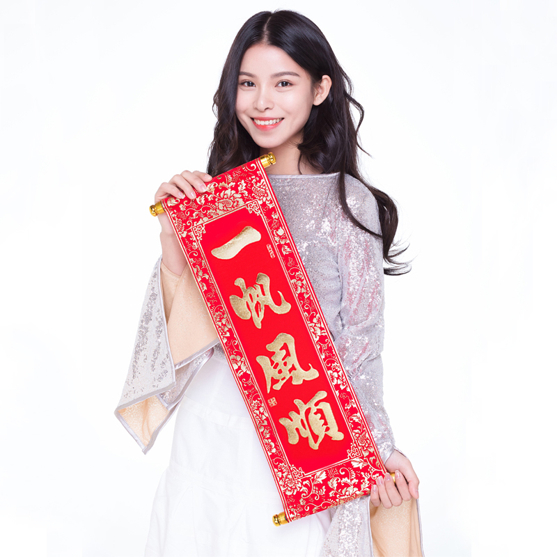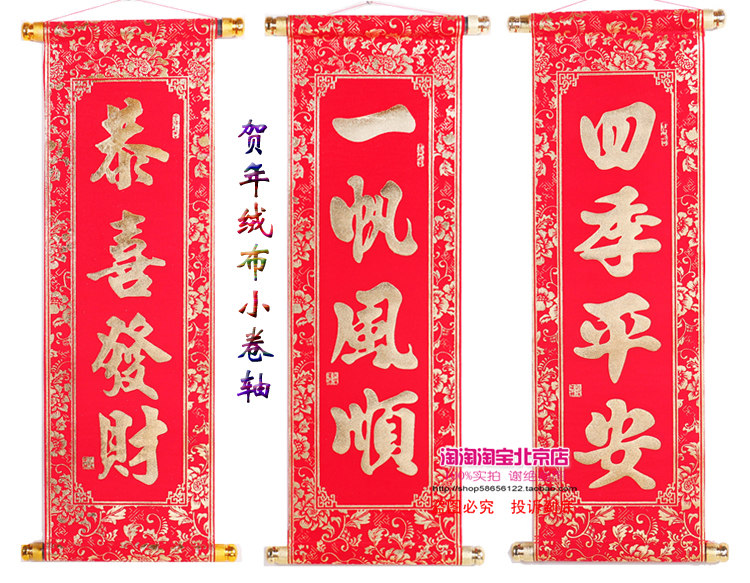 2022 New Year's Spring Festival Four-word scrolls hanging up a velvet cloth little couplets to decorate the Lunar New Year will dance performance props splurge