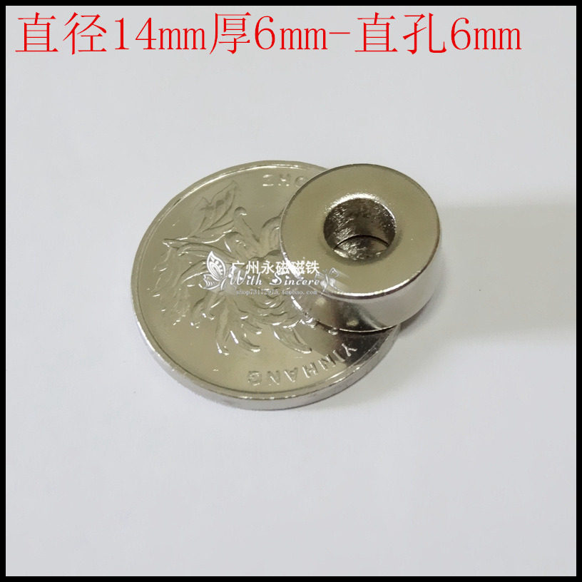 Rare earth permanent magnet king NdFeB super strong magnet strong magnet strong magnetic steel round with hole 14x6 hole 6