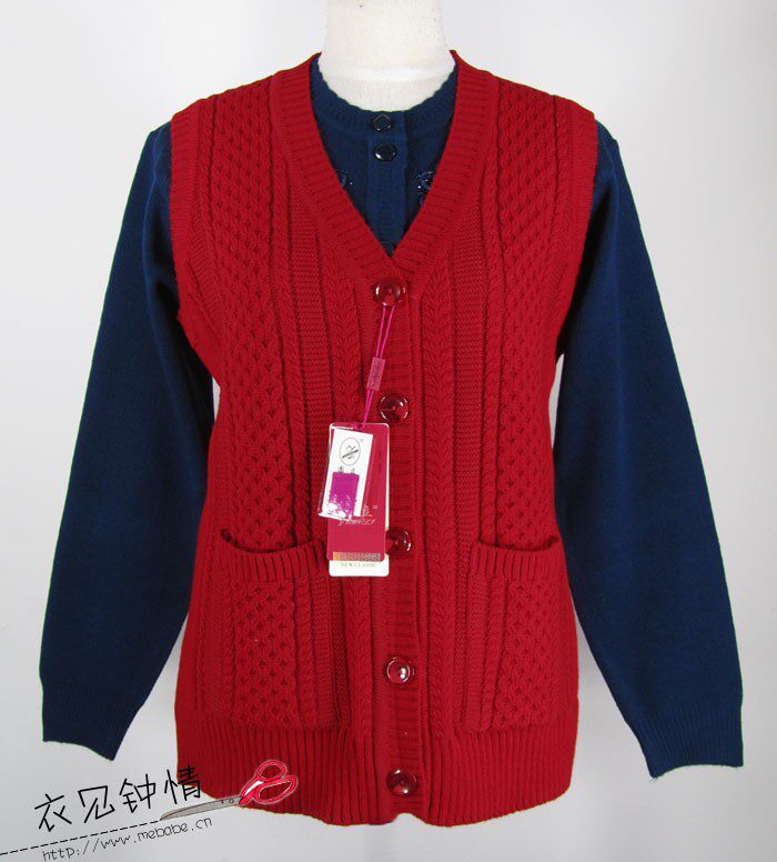 Loss to Ben Qingkang Mama Waistcoat Sweater Sweatshirt In old age women's clothing V collar knit wool vest autumn winter waistcoat