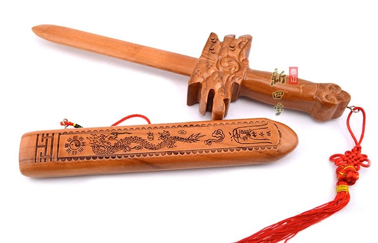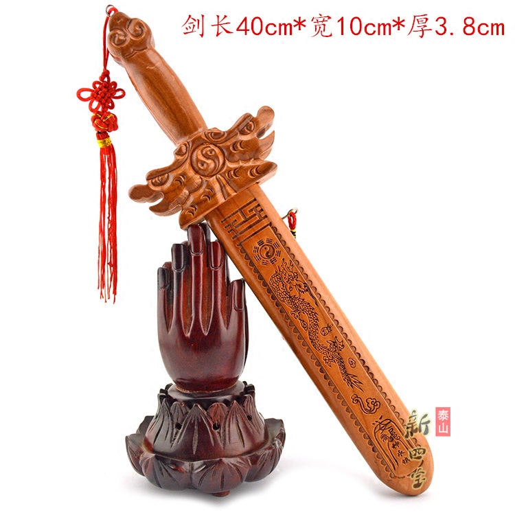 40cm authentic Feicheng peach wood sword dragon with word sword children's portable wood carving living room porch handicraft pendant
