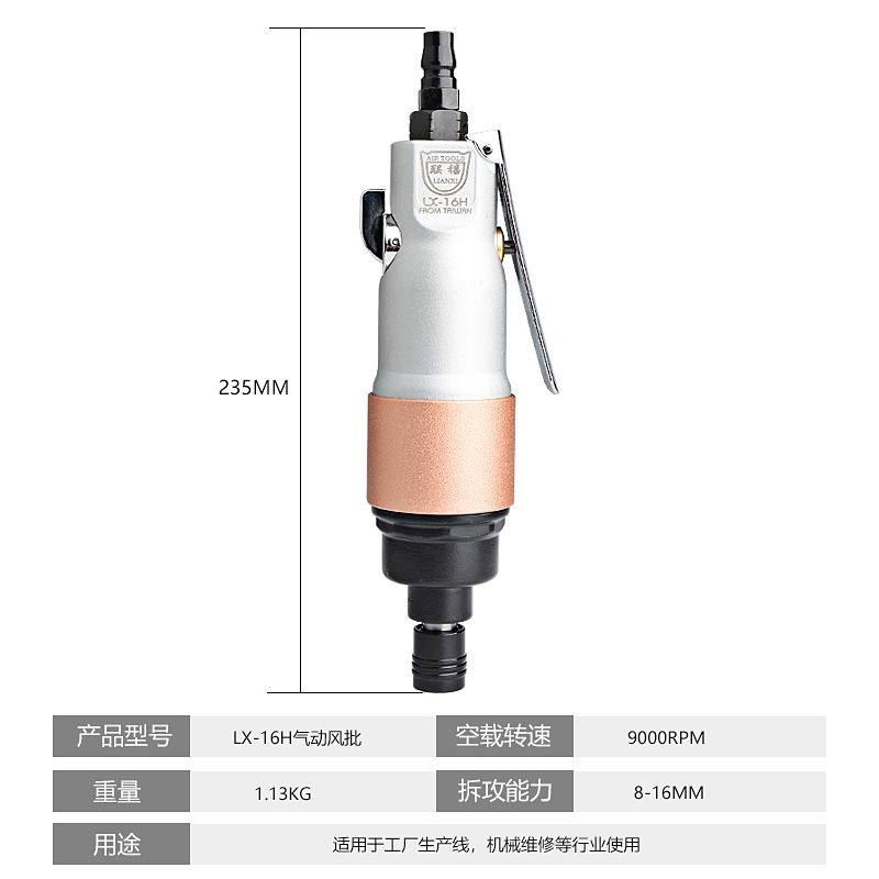 Lianxi Seiko Original 16H high-power double hammer wind batch Industrial grade pneumatic screwdriver screwdriver taper