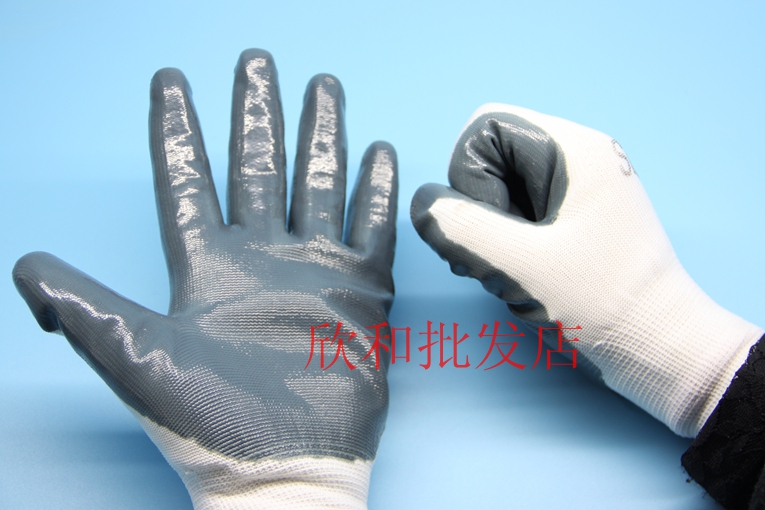 Labor insurance dipped gloves 13-pin nylon nitrile rubberized gloves wear-resistant oil-resistant non-slip work protective gloves 12 pairs