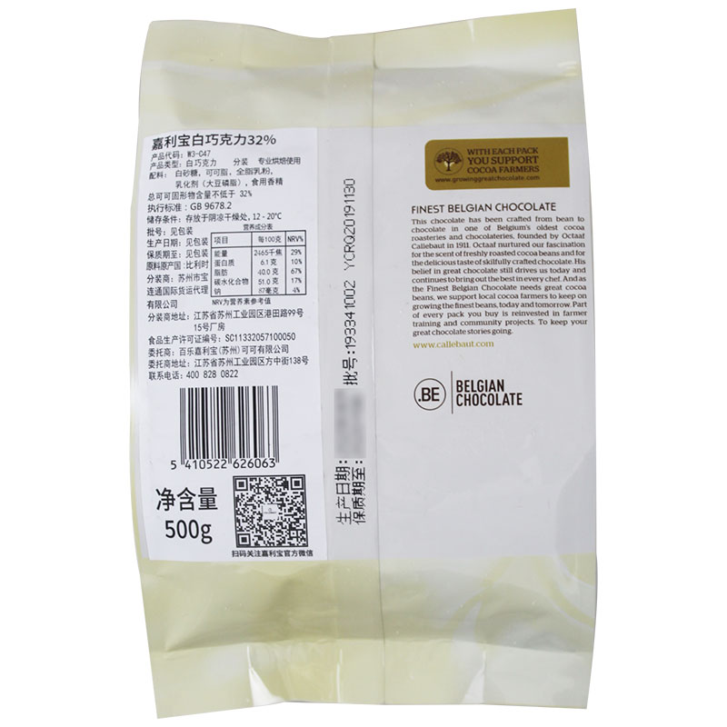 Galibao 28% white chocolate 500g Carlippo 32% white chocolate 500g Carlippo 33 6% Milk Chocolate 500g Carlippo 54 5% Black Chocolate 500