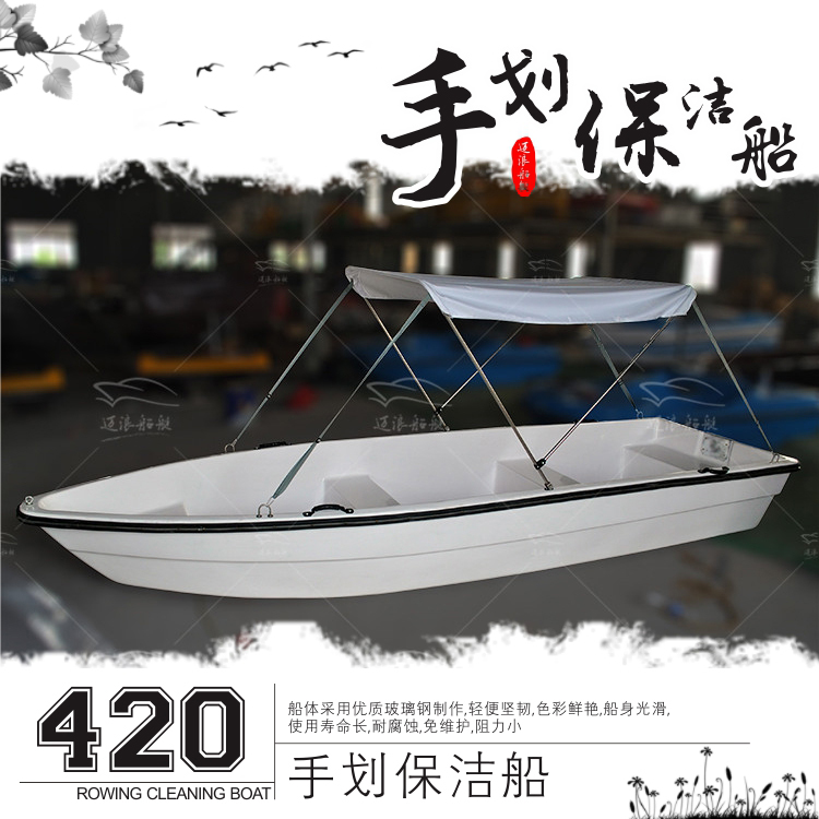 4 2 m 3 cabin double layer thickened hand paddle boat increase open water cabin increased open storage cabin column bracket sun-shading shed triangular bracket awning with universal paste base 12V58 lb electric thruster 12V6
