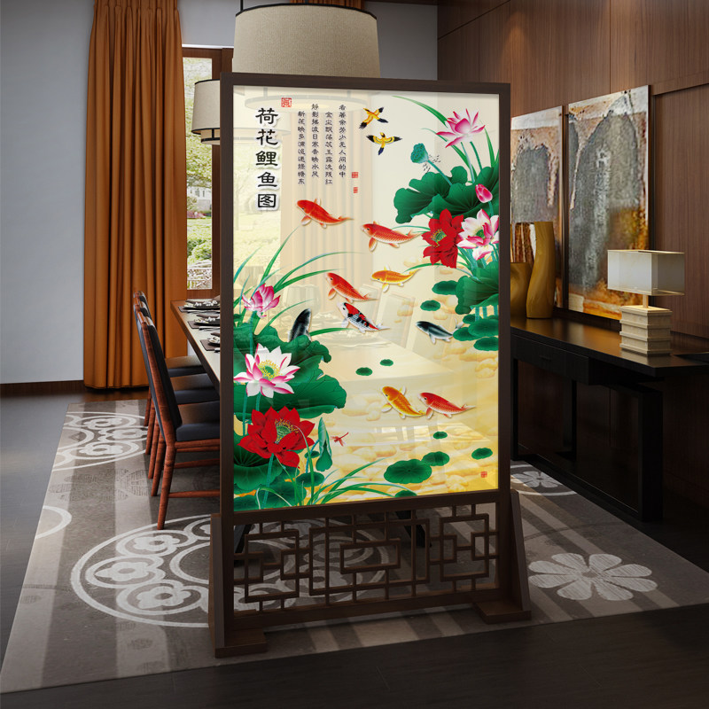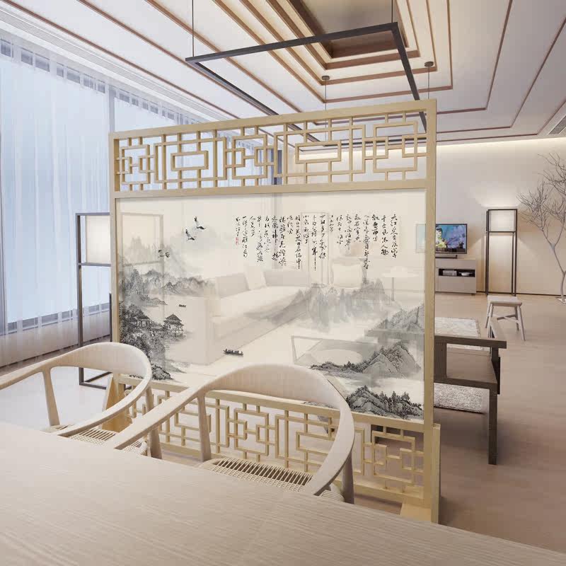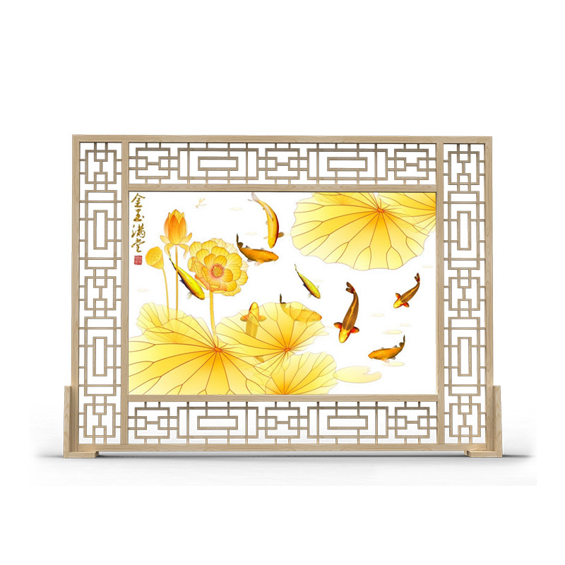 Chinese Modern Environmentally Friendly Feng Shui Screen Red Oak Wood Solid Wood Seat Screen Office Living Room Hotel Hollowed-out Partition White Wax Wood