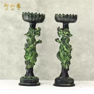 Bronze antique candlestick Dragon Phoenix Lotus Candlestick Buddha Hall ornaments retro Candlestick oil lamp home wedding craft gift decoration