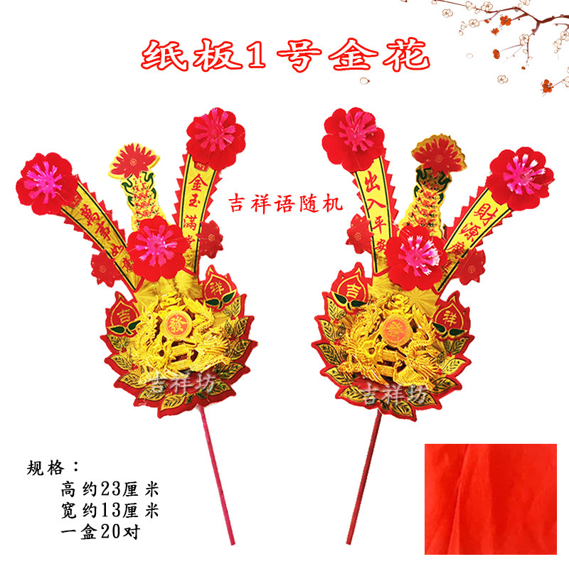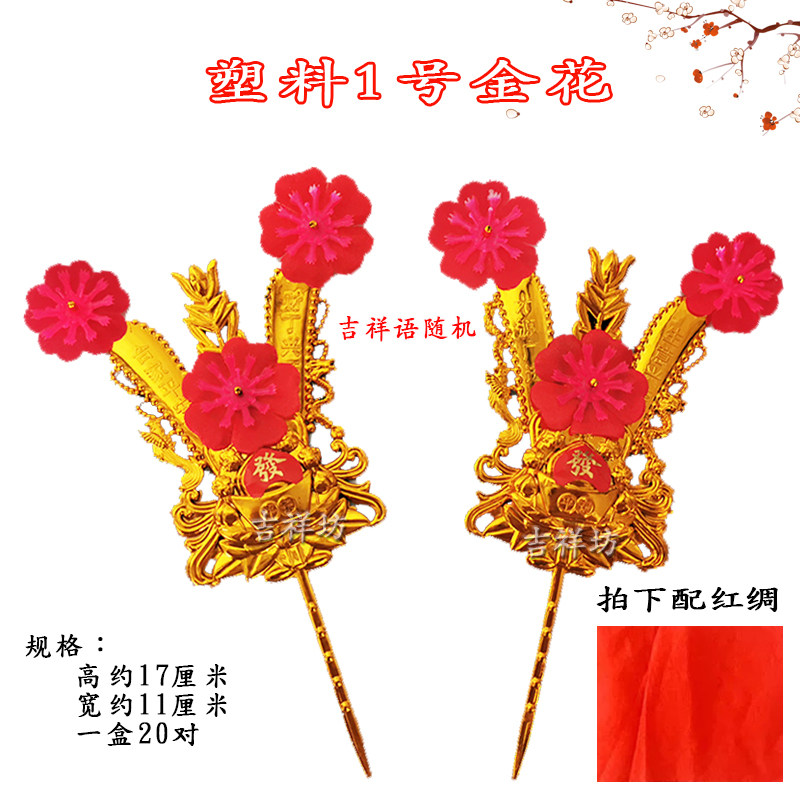 Plastic 1 gold flower 1 pair of red silk plastic 2 gold flowers 1 pair of red silk 1 cardboard gold flower 1 pair of red silk 2 Number of cardboard gold flowers 1 pair of red silk
