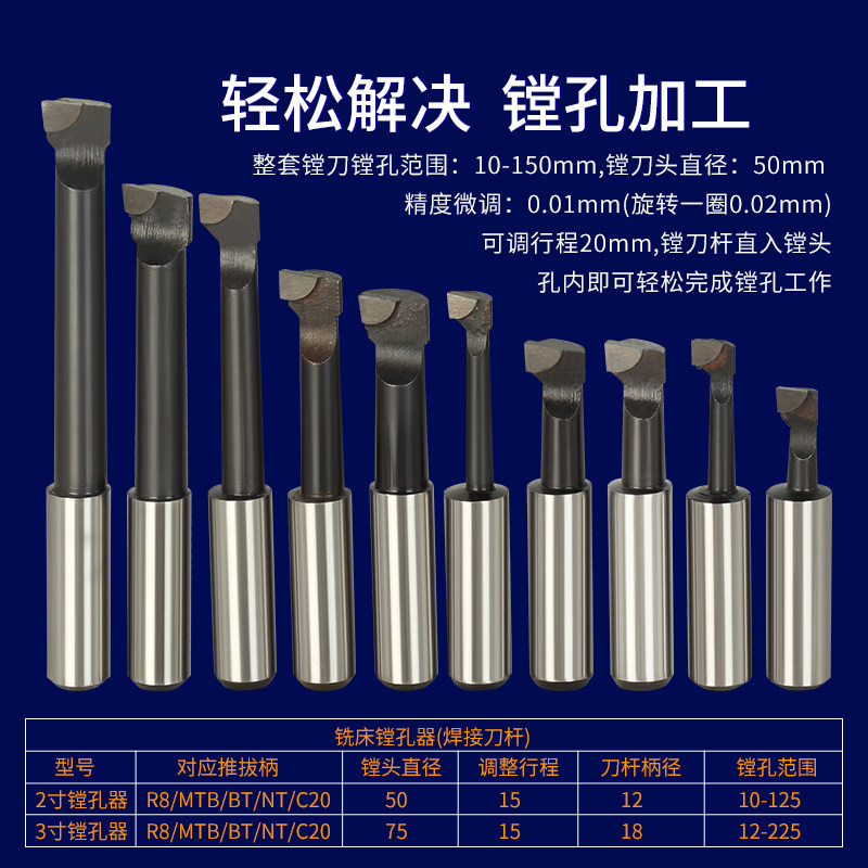 R8-2 inch 3 inch boring machine R8 ordinary milling bed fine boring head fine tuning fine boring tool set inner hole boring tool holder