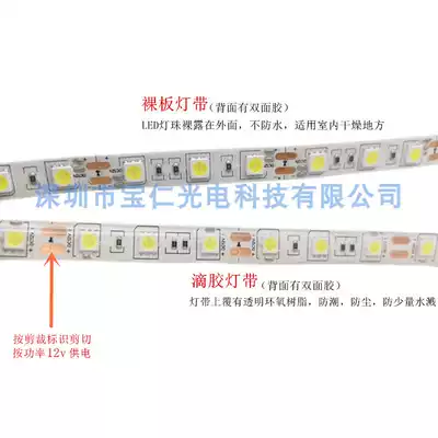 12V light strip 5050 patch 60 lamp beads Rice led monochrome light strip highlight drop glue waterproof bare board living room ceiling