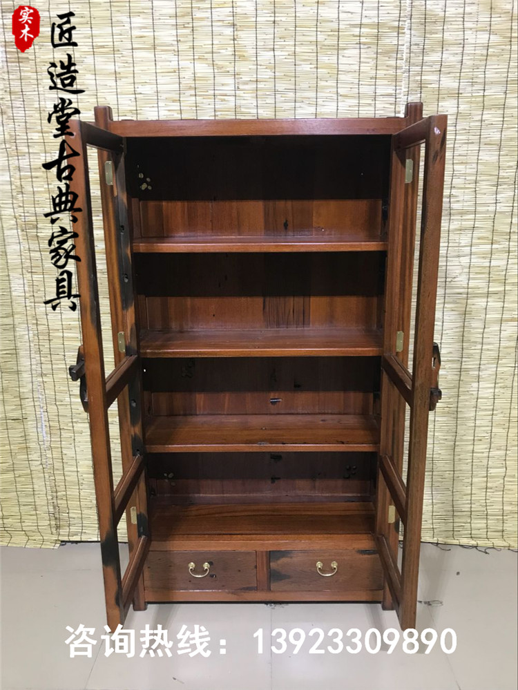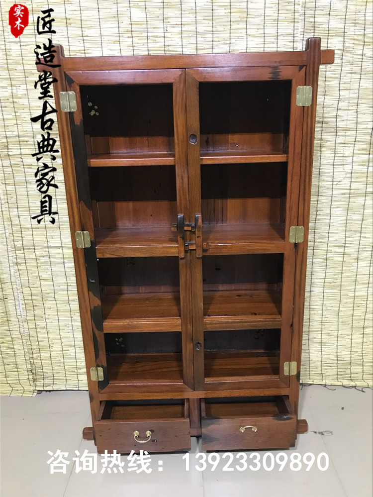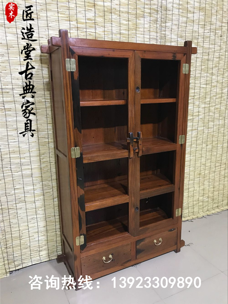 Old ship wood glass display cabinet locker solid wood display cabinet font calligraphy and painting collection cabinet bookcase log storage cabinet