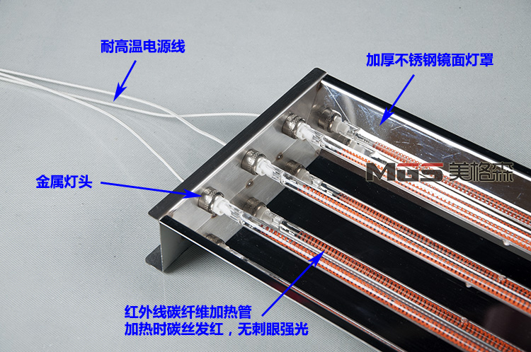 Infrared high-power heater Heating lamp Paint lamp Drying lamp Physiotherapy lamp Carbon fiber three-tube heating oven