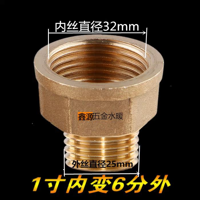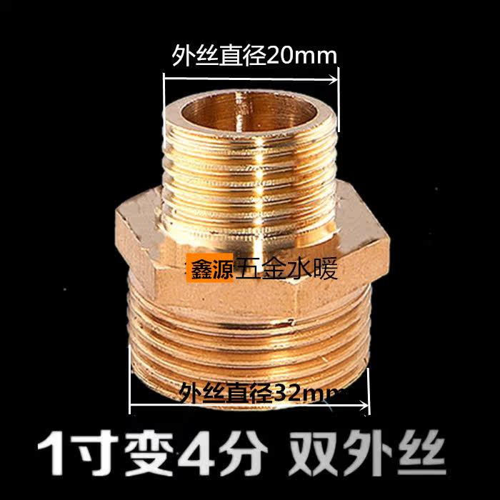 Full copper thickened inner and outer silk double male screw joint 1 inch to 4 sub-6 allodiameter conversion direct accessory size head