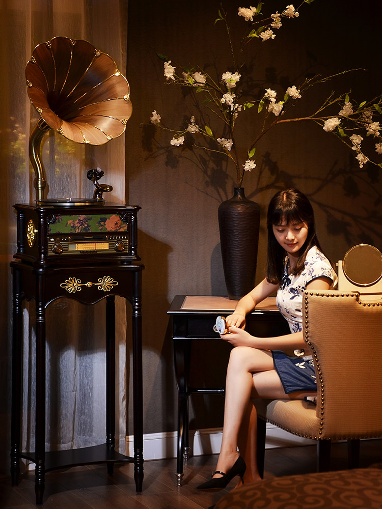 Vannis 1877-35H Solid Wood Cheongsam Creative Audio Vintage Radio Retro Gramophone Vinyl Record Machine