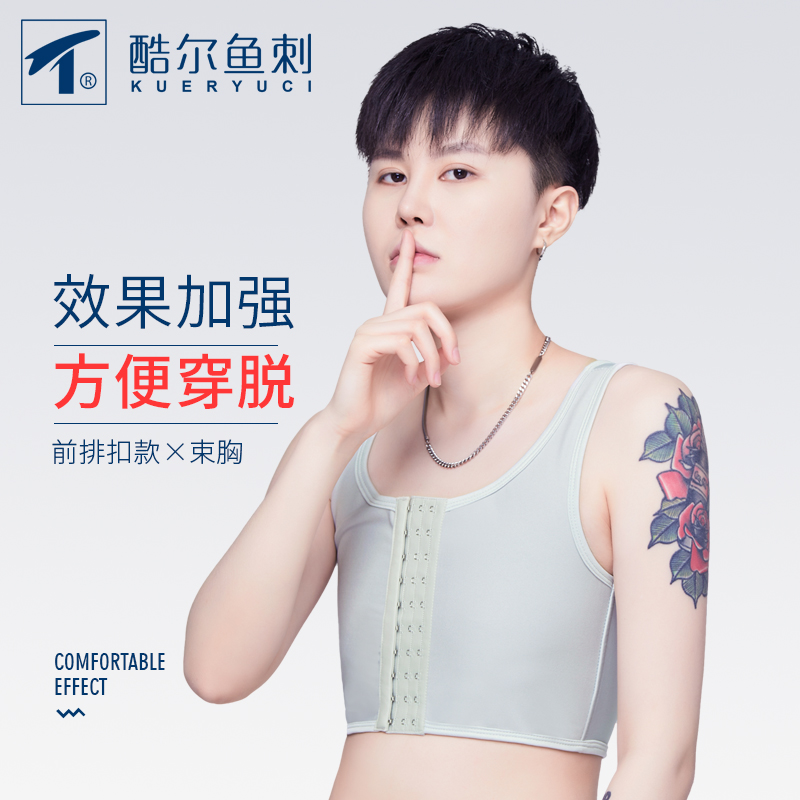 Cool fishbone handsome TT chest les front hook short handsome T neutral underwear plastic chest pull tight sports vest