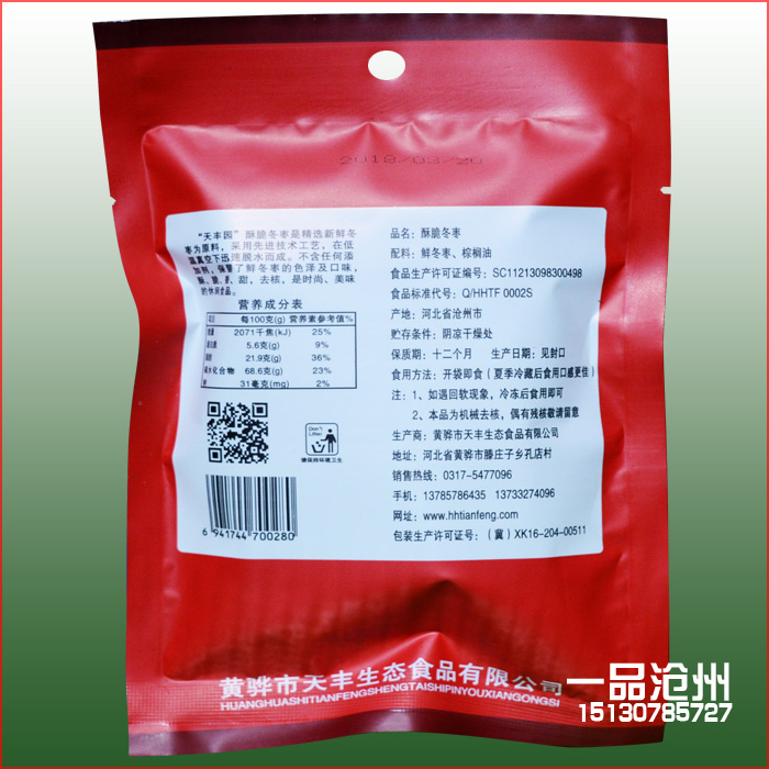 Huanghua Tianfengyuan crispy winter jujube crispy winter jujube Kongdian pitted 50g*10 bags - Taobao