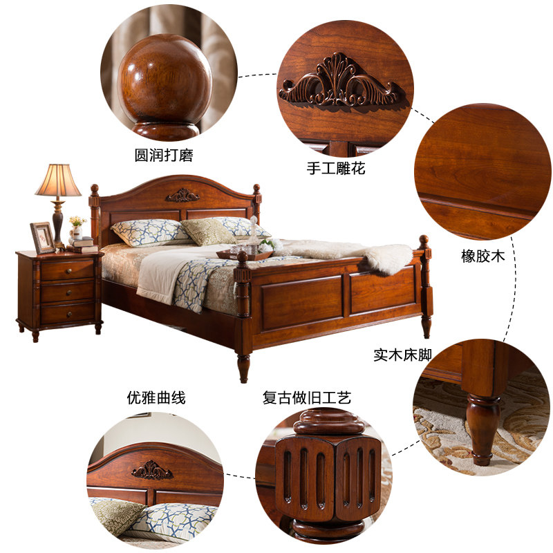 Meng Han American Double Bed Solid Wood Bed Carved Bed 1 5 1 8 m European Country Spot Neoclassical Furniture