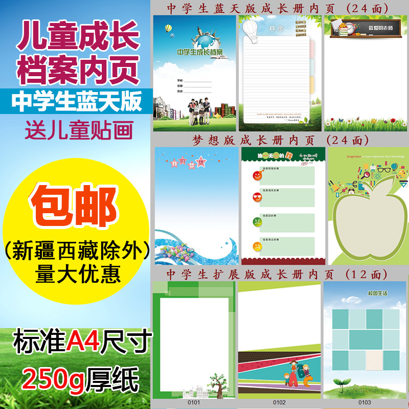A4 Middle School Junior High School Growth Archive Record Book Slip Bag Loose Leaf Information Book 30 sheets 60 sides 1 book