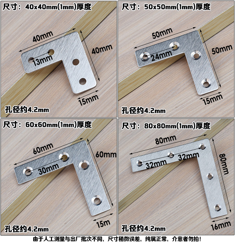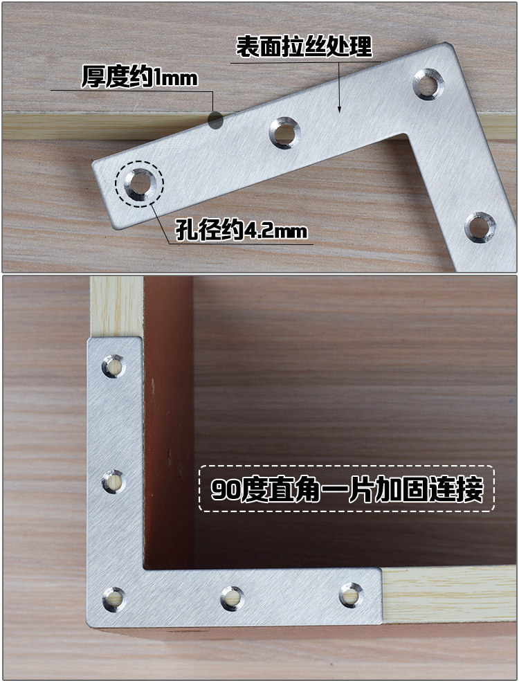 Pure stainless steel L-shaped straight piece plane corner code 90 right angle 7-word door and window reinforcement code furniture hardware connector