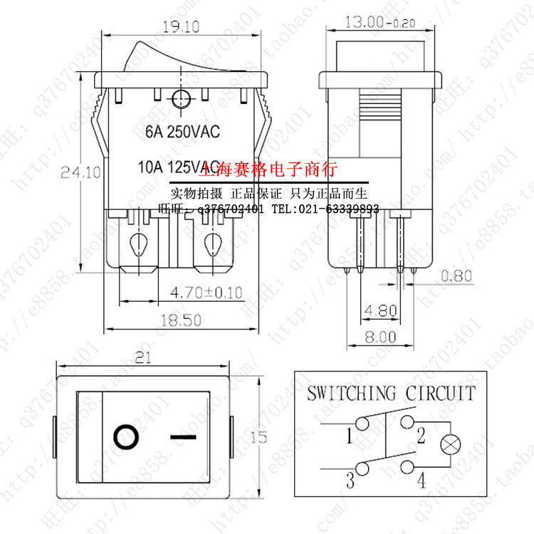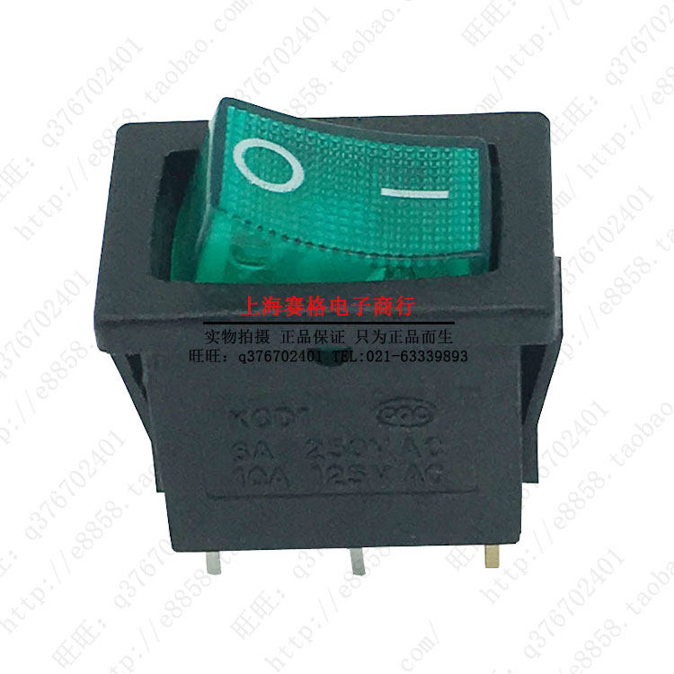 4 feet 2 gear green with light rocker switch 6A 250V boat-shaped switch rocker switch double-pole single-throw