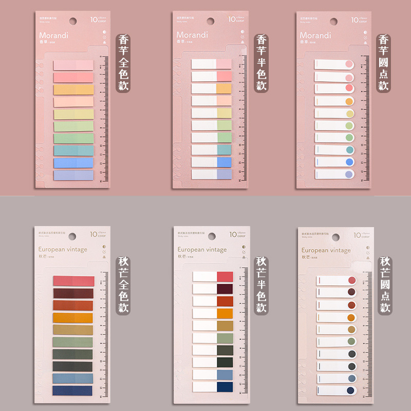 Morandi color label type convenience stickers can write classification labels stickers PET waterproof convenience stickers index stickers 10-color girl heart small fresh note-taking bookmark stickers