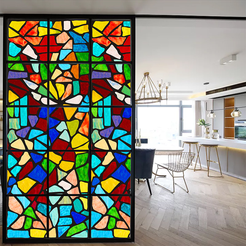 European color retro church electrostatic finished glass fixture transparent bathroom window window sticker