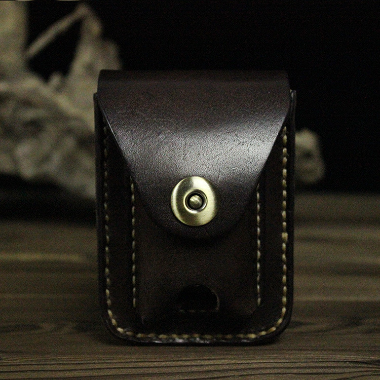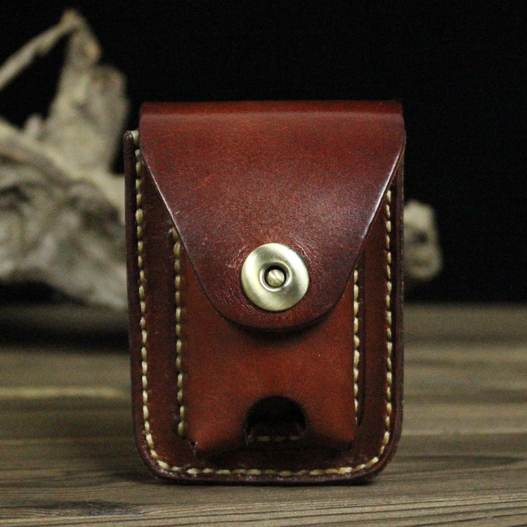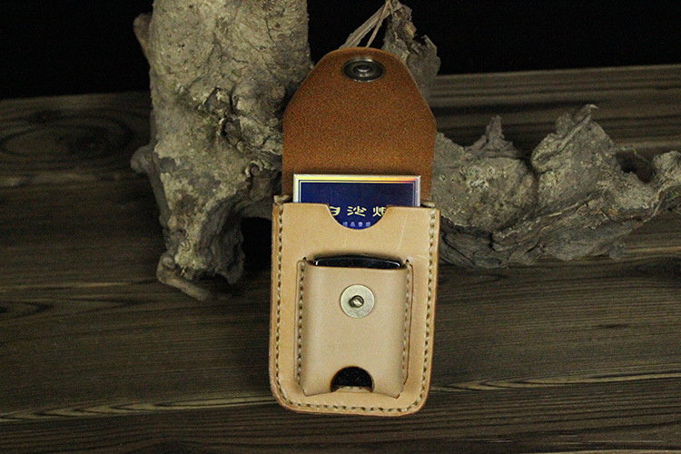 Retro handmade tree cream leather leather zipp0 lighter pack cigarette case one first layer cowhide wear belt small pocket
