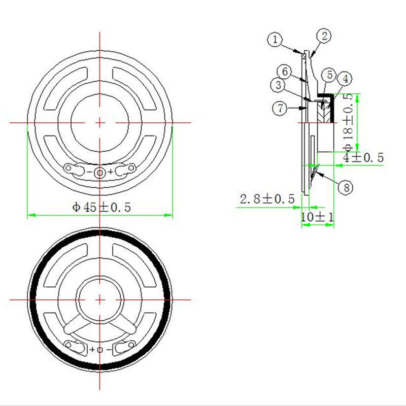 LS45N-10F-R8 45mm8 Euro 2W1 75 inch high-pitched waterproof circular respirator with horn speaker 4V