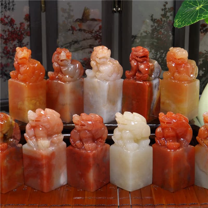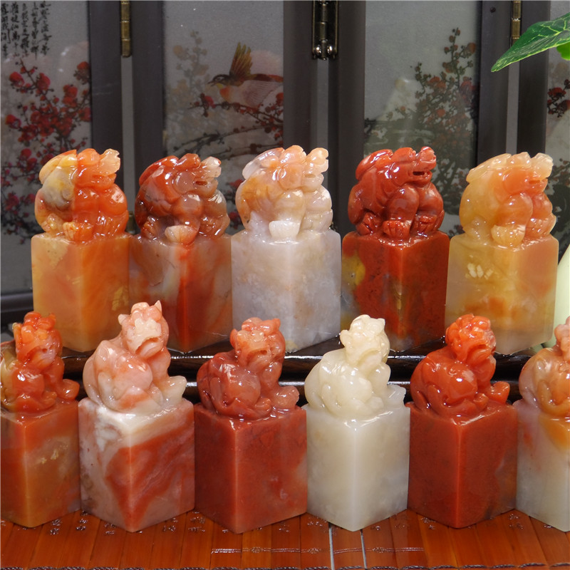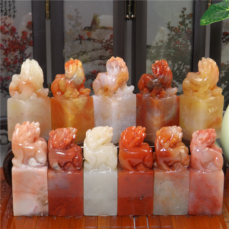 Golden Stone Seal Engraving Lao Stone Ancient Beast button Chapter 20x20x50mm Seal of Shou Mountain Stone Exercise Stone Chapter Material Name Zhang