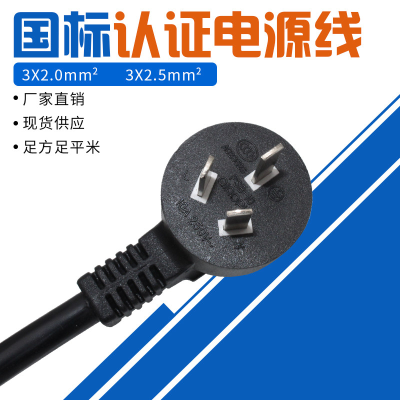 Pure copper 10A national standard plug connecting wire 3 core 2 2 5 squared 1 8 3 m power cord Three-hole character line