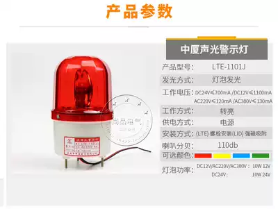 Zhongxia warning light LTE-1101J with LED rotary sound and light alarm light AC220V 380V DC12V 24V