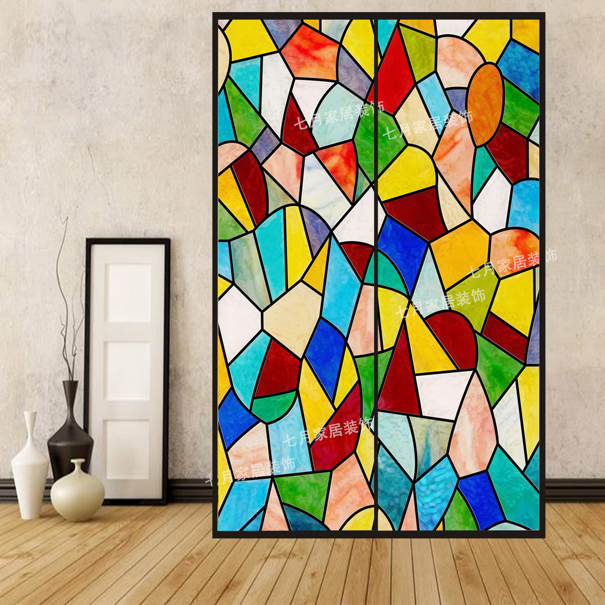 European-style colored retro church frosted glass sticker powder room bathroom window window flower sticker transparent opaque