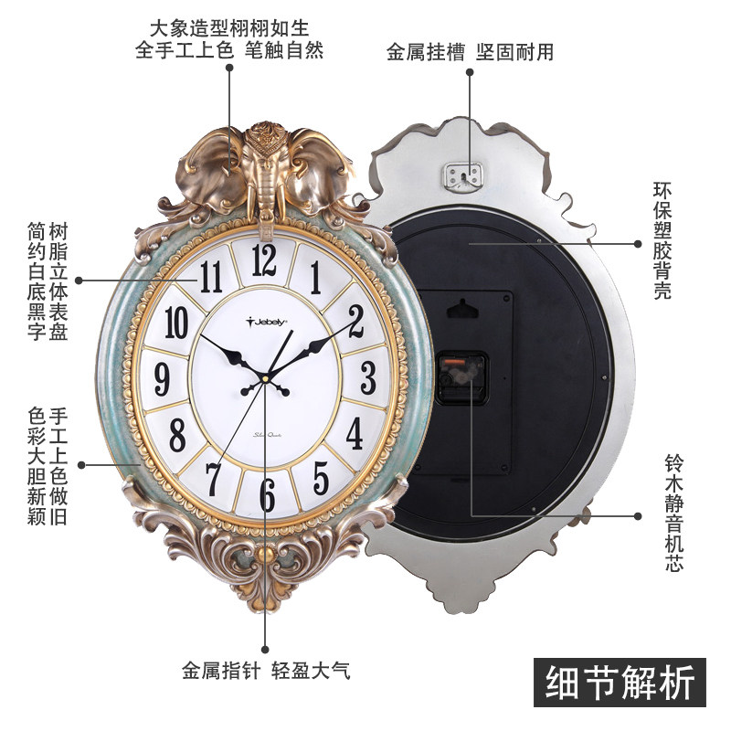 european style wall clock living room elephant quartz watch silent modern simple creative atmospheric clock luxury wall clock wall clock