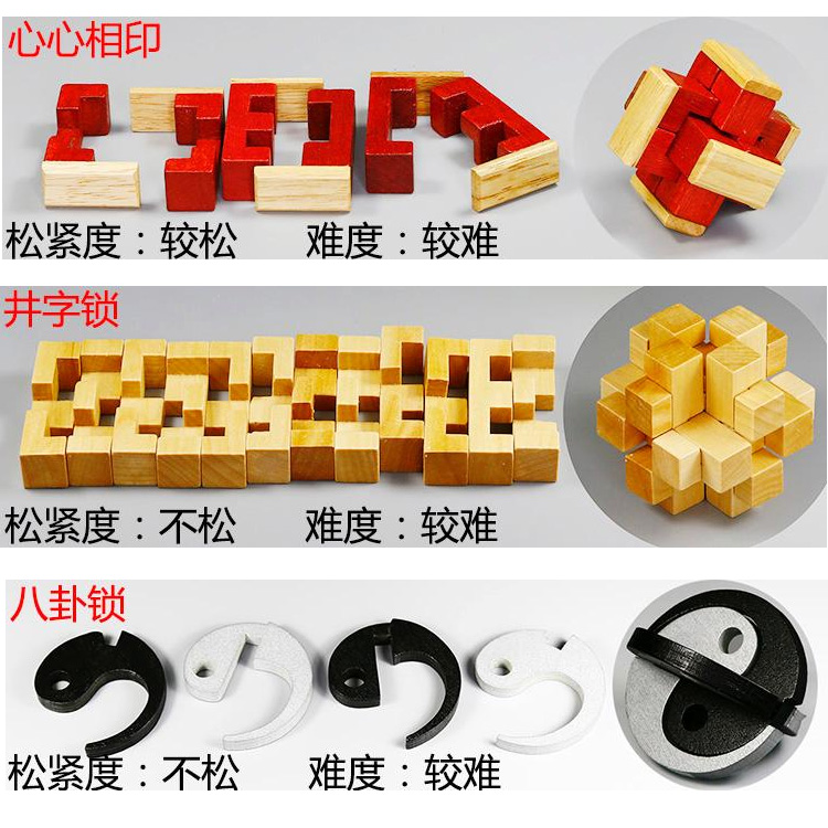 Color and good Han lock back to head injury headache twelve pieces (primary color ring with subduction rule beech wood 9 through wood knot 6 assembled hearts phase Inprint Swiss cubic lurking iron chain god dragon pendulum tail (woody headache twelve blocks (color gossip)