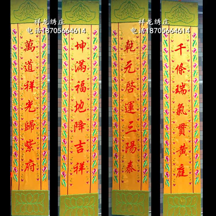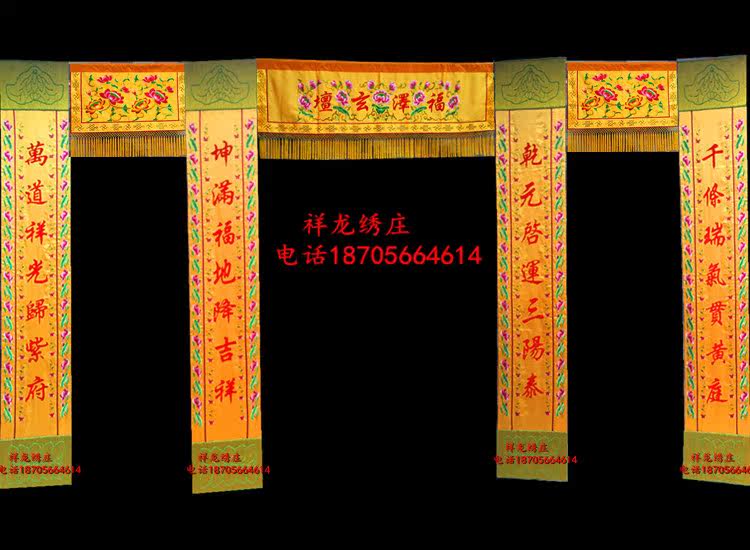 Tides embroidered with Buddhist Taoist banners via a table enclosure Baobao Gaidhata Changhata The Buddha Hall of the Buddha Buddha Hall Three doors and four columns