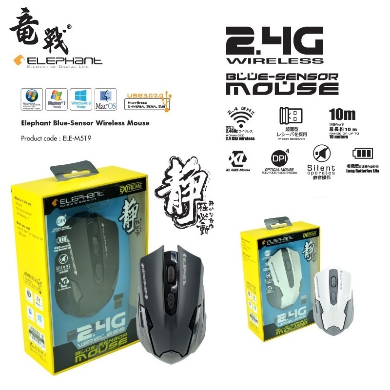 ELEPHANT Battle M519 2nd Generation Full Button Mute Wireless Mouse Desktop Notebook Universal