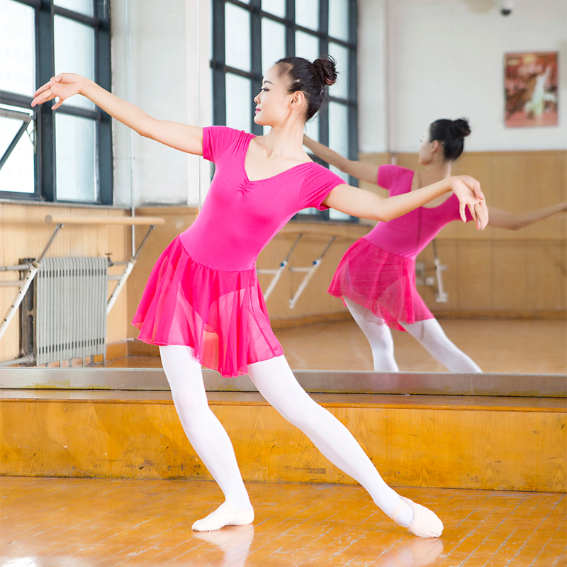 Ballet Dance Suit Women Summer Gymnastic Practice Dresses Adult Sheen Art Examination Body Pure Cotton Even Body Short Top Skirt