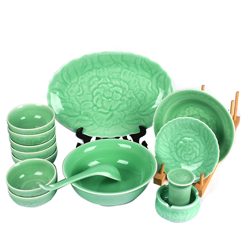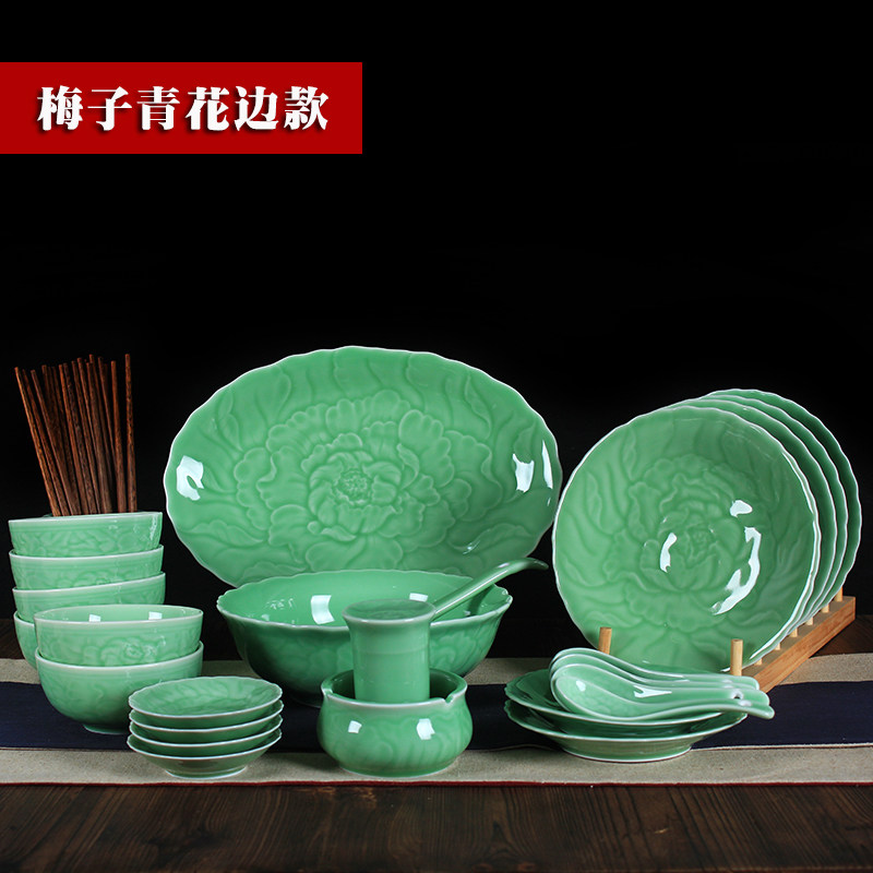 Longquan Ceramic Tableware Set Microwave Ceramic dish dish with peony 22 - 58 head Chinese - style Joe - migration gift
