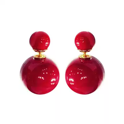Summer red earrings temperament fashion Chinese style ear needle 2021 New Tide commuting cute ear jewelry